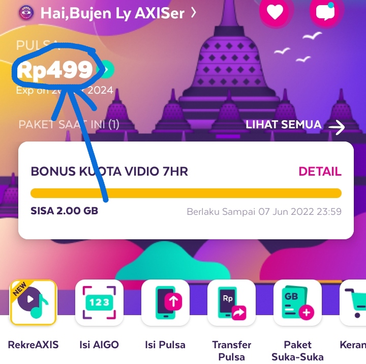 - kemudian klik tanda hijau kecil di samping saldo pulsa