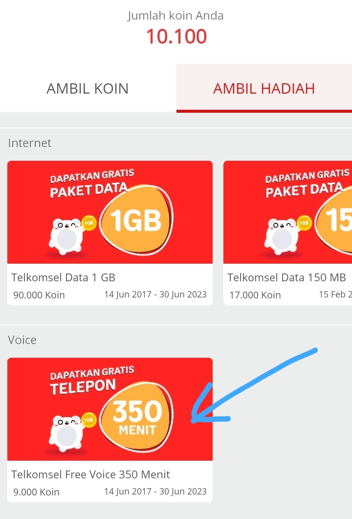 Hanya butuh koin 9000 untuk ditukar kuota nelpon