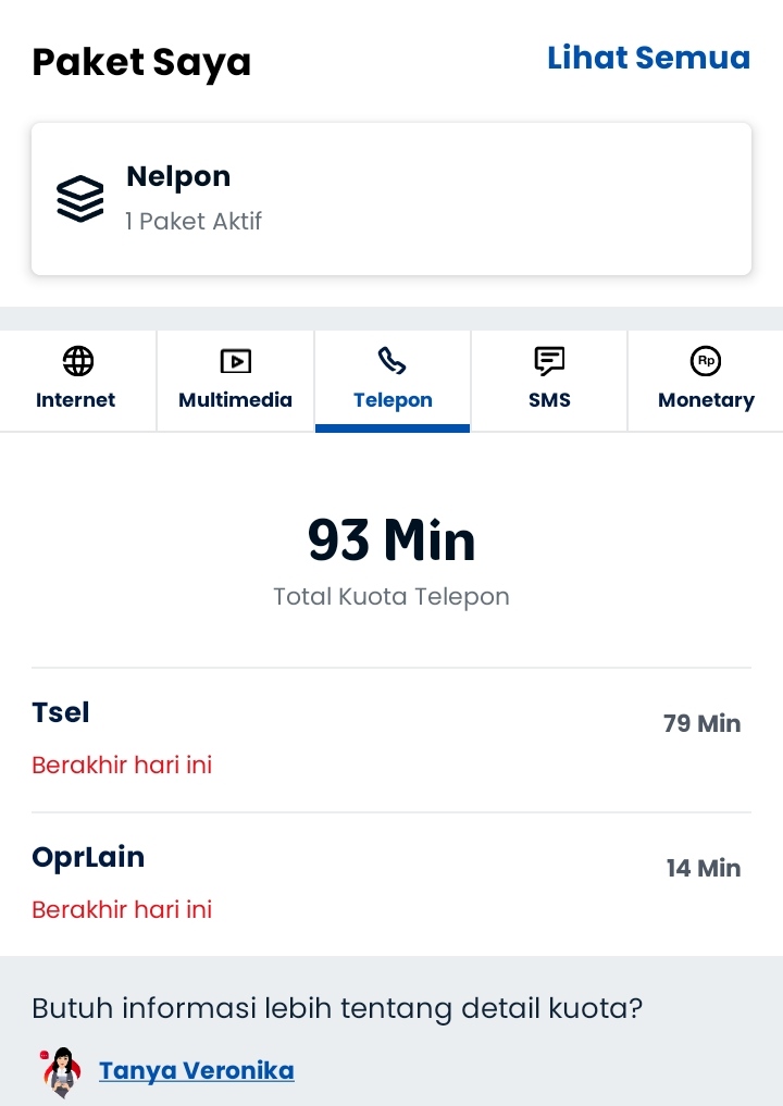 - Contoh ini adalah kuota nelpon sebelumnya, masih sisa sehari yakni hari ini